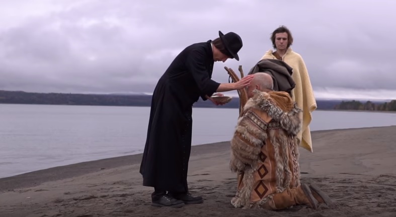 Ko smo bili že blizu Bobrovega otoka, sem videl skupino teh domorodcev hiteti k bregu. Zbrali so se skoraj vsi otočani, da bi nas pozdravili. Možje so dvakrat izstrelili iz svojih pušk ter s tem izrazili, da so zelo veseli misijonarjevega prihoda. Komaj sem stopil na suho, že so vsi moški prišli k meni, mi prijazno segali v roko in me potem peljali v svojo vas, ki jo sestavlja osem bornih kolib iz lubja. Najprej sem stopil v poglavarjevo kočo, v kateri se je zbralo več teh ubogih domorodcev, ki se nikakor niso mogli dovolj nagledati duhovnika, kajti po pripovedovanju drugih so o duhovnikih že veliko slišali, nikdar pa še niso nobenega videli.«